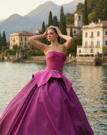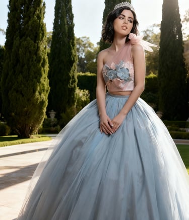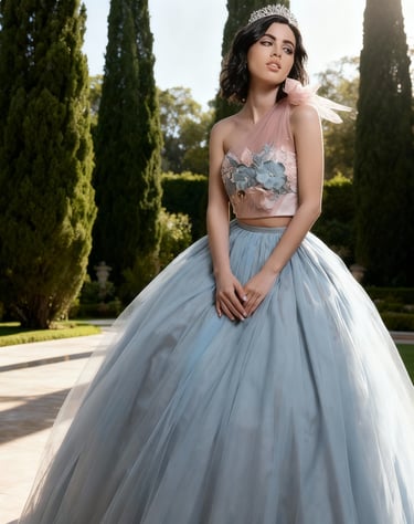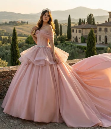 Los diseños incluyen desde siluetas flotantes con capas de tul y organza hasta bodices adornados con brillantes cristales y encajes intrincados. Los colores suaves y pasteles realzan la atmósfera onírica, haciendo que te sientas como una princesa de ensueño.