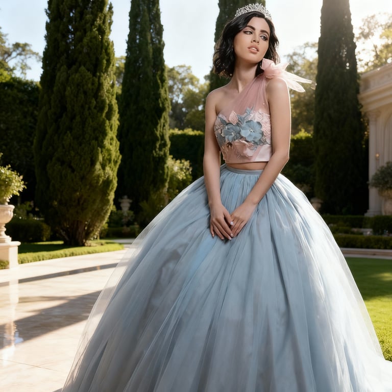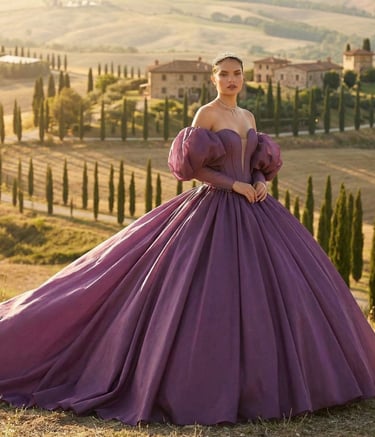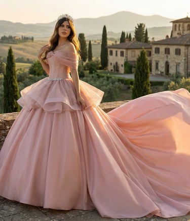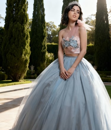 Los diseños incluyen desde siluetas flotantes con capas de tul y organza hasta bodices adornados con brillantes cristales y encajes intrincados. Los colores suaves y pasteles realzan la atmósfera onírica, haciendo que te sientas como una princesa de ensueño.